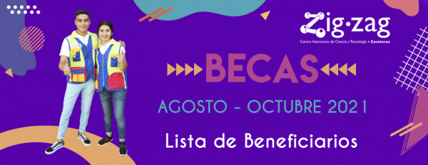 A través del Consejo Zacatecano de Ciencia, Tecnología e Innovación, el Centro Interactivo de Ciencia y Tecnología Zigzag felicita a las y los jóvenes que han sido seleccionados para ser beneficiados con una beca para apoyo a sus estudios y que formarán parte del equipo de atención al público y operación de Zigzag de Agosto a Octubre 2021.