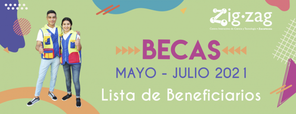 A través del Consejo Zacatecano de Ciencia, Tecnología e Innovación, el Centro Interactivo de Ciencia y Tecnología Zigzag felicita a las y los jóvenes que han sido seleccionados para ser beneficiados con una beca para apoyo a sus estudios y que formarán parte del equipo de atención al público y operación de Zigzag de Mayo 2021 y hasta el mes de Julio 2021.