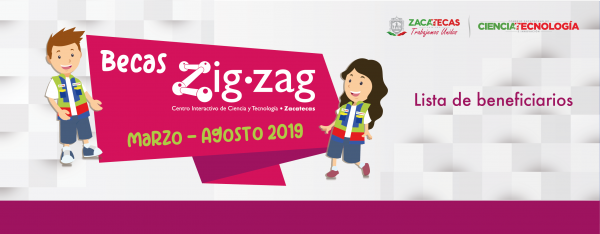 A través del Consejo Zacatecano de Ciencia, Tecnología e Innovación, el Centro Interactivo de Ciencia y Tecnología Zigzag felicita a las y los jóvenes que han sido seleccionados para ser beneficiados con una beca para apoyo a sus estudios y que formarán parte del equipo de atención al público de Zigzag de marzo a agosto 2019.