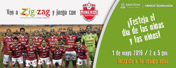 El Centro Interactivo de Ciencia y Tecnología Zigzag te invita a jugar con el equipo de Mineros de Zacatecas. Inscribe a tu equipo y juega en el futbolito de tamaño real en la exposición temporal Mundo Futbol. Vive la experiencia de competir con jugadores profesionales ¿Quién ganará?